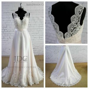 Elegantes brautkleid traum spitze hochzeitskleid a linie satin.