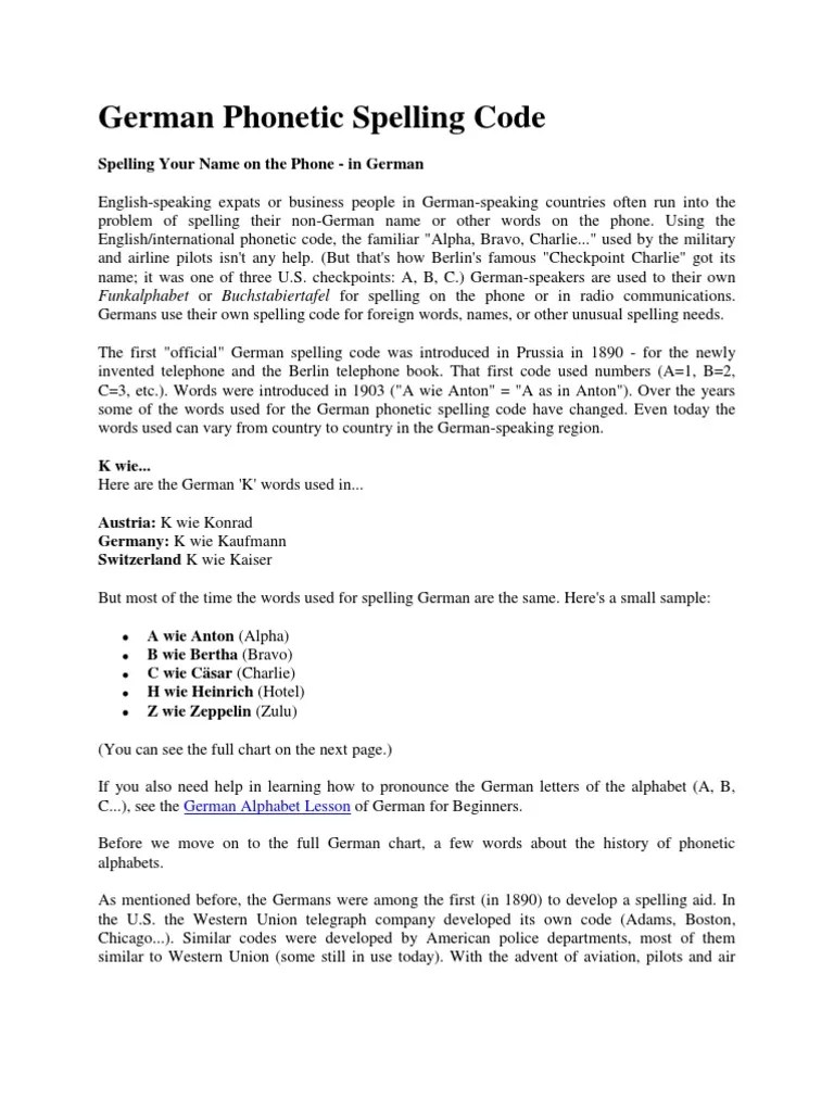 Avoid confusion when spelling words and names on the phone! •• just type a word and it will be spelled automatically with code words: Using the english/international phonetic code, the familiar alpha, bravo, charlie. used by the military and airline pilots isn't any help. The german spelling alphabet (deutsches funkalphabet) also uses first names. Here is a quick review with approximate english . Find out why you absolutely need to learn the german alphabet. That is the alphabet you hear in military jargon, such as (in english) alfa bravo charlie for abc. The world war ii german system was little changed from the first world war. Here is the nato phonetic alphabet and a commonly used german phonetic . A spelling alphabet is a set of words used to stand for the letters of an.
